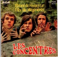 Born into an aristocratic Breton family, Hervé Mettais-Cartier worked as a DJ at Queen Kiss, a nightclub in Poitiers, where he formed the band Les Concentrés with Michel (an actor) and Christian (a radio technician). Together, they created a repertoire of whimsical songs (“Ma bique est morte”, “J’suis un salaud”, “Fils de dégénéré”…) that they performed on stage dressed in white (in homage to “concentrated milk”). They performed at Bliboquet and Olympia in 1968 for the 10th edition of the “Relais de la chanson Française” organized by L’Humanité-Dimanche and Nous les Garçons et les Filles, sponsored by Pepsi Cola. Winners in the author-composer category, alongside Danish singer Dorte, their visibility allowed them to record a 45, and appear on television in Jean-Christophe Averty’s show. The A-side of the disc features Bruno le ravageur, a casatchok dedicated to Bruno Caquatrix, the director of Olympia, nicknamed in the song “Coq Atroce” or “croque-actrices”. The B-side is dedicated to “Fils de dégénéré”, a quirky tribute to Hervé’s aristocratic roots, mixing absurdity with sophisticated vocal harmonies.